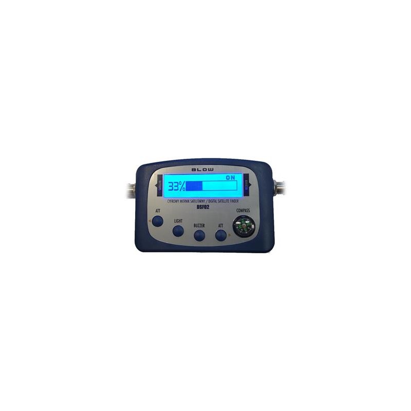 Digitální měřič satelitního signálu BLOW DSF02 je navržen tak, aby pomáhal při nastavování polohy satelitních antén. Díky mikroprocesorovému řízení umožňuje měřič přesnou indikaci úrovně satelitního signálu, což je velmi užitečné při umisťování satelitních antén. Měřič je vybaven čitelným LCD displejem s funkcí podsvícení, díky čemuž může být použit i za zhoršené viditelnosti.